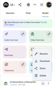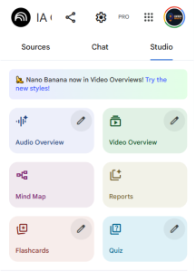 🆕 Panel Studio Renovado: Google actualizó el panel Studio para que puedas crear múltiples formatos a partir de tus documentos. Ahora verás varias opciones principales: