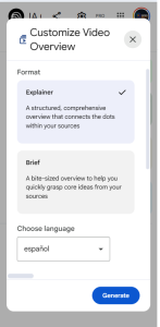 🆕 ¡NOVEDAD 2025! NotebookLM ahora genera videos completos directamente en la plataforma con la nueva función “Video Overviews”. Ya no necesitas herramientas externas como Canva o Capcut.