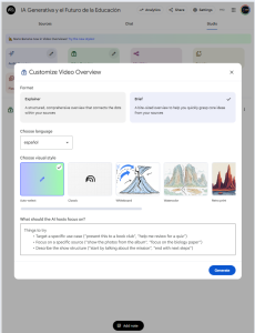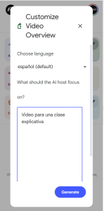 Antes o después de generar, puedes personalizar tu Video Overview: